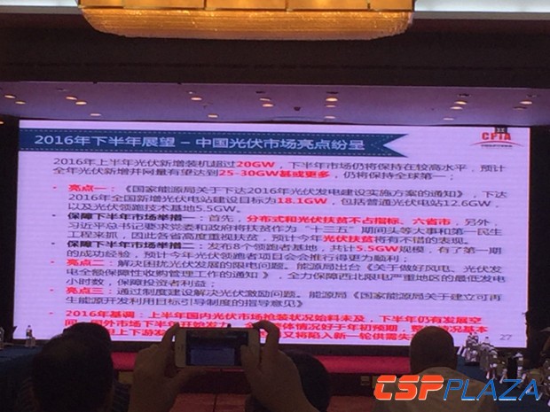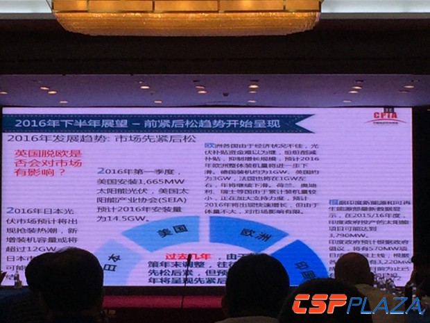 光伏行業協會秘書長王勃華提到,2016年總的基調是上半年國內光伏市場搶裝始料未及,下半年仍有發展空間。