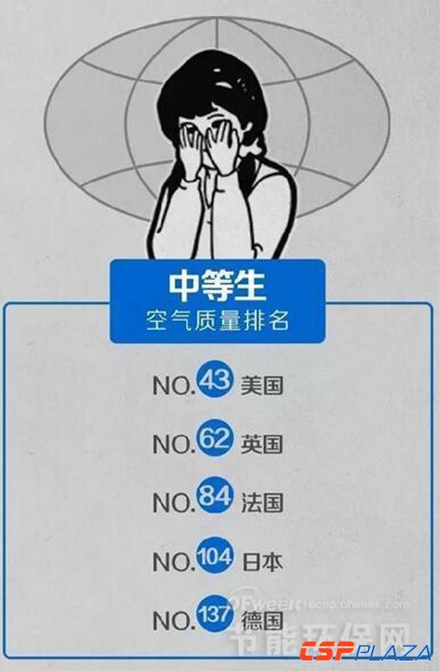 中國的空氣質量吊車尾幾乎是意料之中,但是真的沒有想到,會排得那么后…(據說,輸給印度主要是輸在了道路交通尾氣、燃燒礦物燃料等所產生的二氧化氮濃度上)。