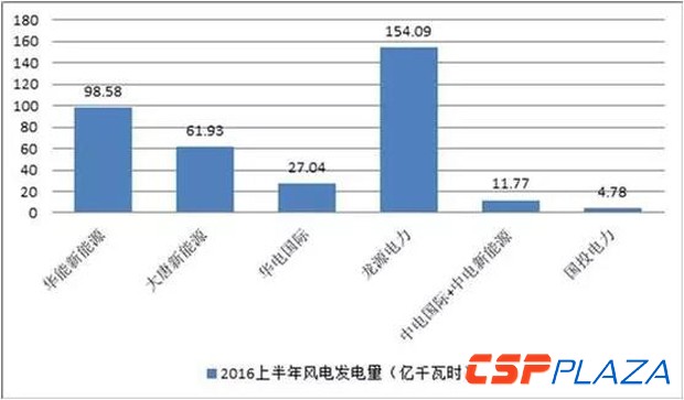 截至6月底,2016年上半年風電發電量153,929兆瓦時,同比增34.1%。光伏電站發電量43,667兆瓦時。