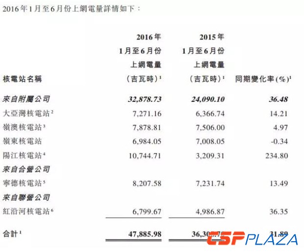 2016年1月至6月份,核電機組上網電量約為47,885,980兆瓦時,較去年同期增長31.89%。