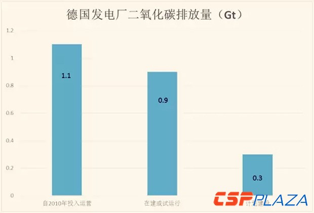 在德國政府的大力倡導下,德國已經比預期減少了37億噸的二氧化碳排放量。自2010年起,德國境內所有在運火電廠在整個生產周期要排放11億噸二氧化碳,在建的和試運行的火電廠共計排放9億噸,計劃要建的火電廠排放3億噸。