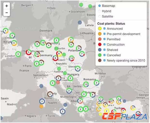 歐洲各國火電廠分布圖(數據來源:CoalSwarm)