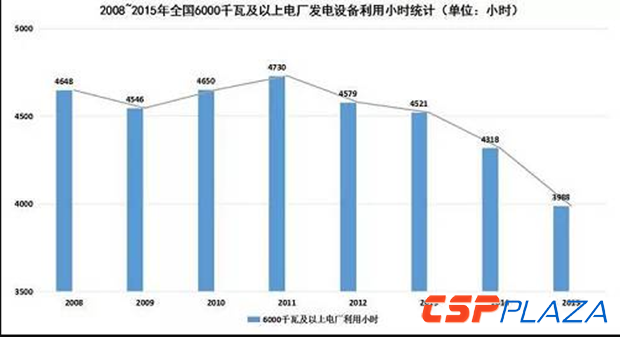 數據顯示,2015年中國全社會用電量55500億千瓦時,同比僅增長0.5%。同期,全國發電量56184億千瓦時,同比下降0.2%。發電機組平均利用小時數降低。2015年全國6000千瓦及以上電廠發電設備累計平均利用小時為3969小時,同比減少349小時。其中,水電設備平均利用小時為3621小時,同比減少48小時;火電設備平均利用小時為4329小時,同比減少410小時。
