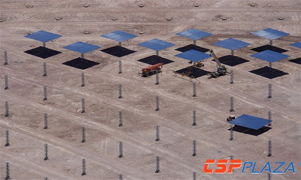 裝機110MW的塔式熔鹽電站Cerro Dominador和一個100MW的光伏發電項目組成了Atacama1混合太陽能發電園區,該項目于2014年開工建設,采用熔鹽傳熱儲熱技術,配置17.5小時的超長儲熱系統,可24小時持續穩定運行。但是,今年1月份因受到阿本戈債務危機影響,約有1500名工人被迫從項目現場離開,只留下部分維護人員。