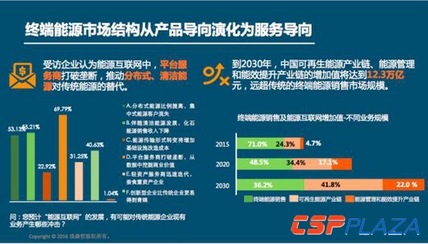 所謂能源互聯網所蘊含的數字化的技術運用、數字化的管理、數字化的商業模式,數字化就是互聯網式的商業模式在市場微觀層面已經開始生根發芽。埃森哲預測到2030年中國可再生能源的產業鏈、能源管理和能效提升產業鏈的增加值將達到12.3萬億。