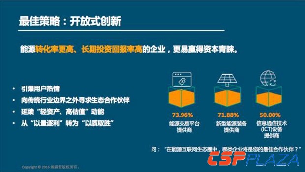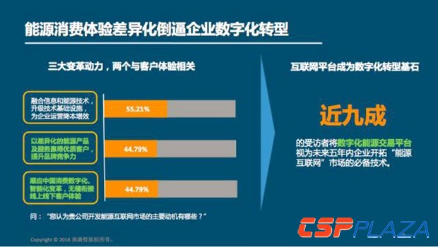 能源互聯網為企業優化轉型方向提供了新的機遇,近90%的受訪高管認為,數字化的能源業務平臺是企業開拓能源互聯網市場必需的技術能力。