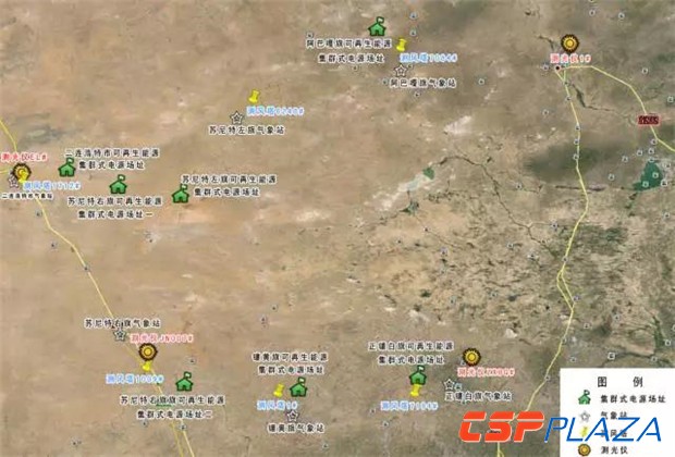 集群式電源場址與氣象站、測風塔以及測光儀位置關系