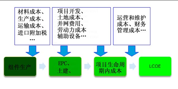 LCOE是對太陽能電站整個生命周期這一較廣的時間范圍內進行的粗略成本測算,這些成本大概包括:投資成本:(資本支出CAPEX)、運營成本(或運維成本,OPEX)、財務成本(在某些分析中被歸入投資成本)