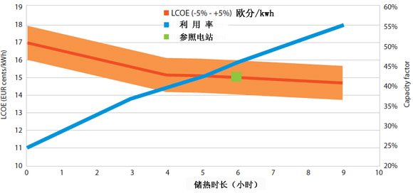 光熱發電技術應用的多變性使其成為一種特殊的發電方式,比如如果給光熱電站配置9小時儲熱系統,將可以降低約3%的LCOE。