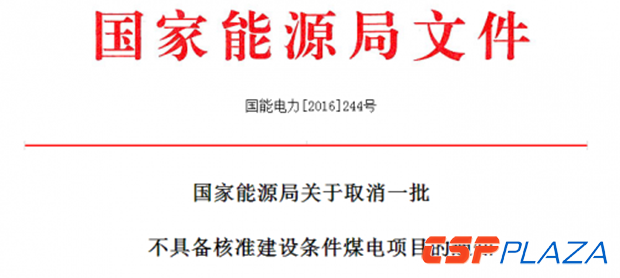 來自國家能源局官方網站的消息顯示:近日,國家能源局發布了《關于取消一批不具備核準建設條件煤電項目的通知》(國能電力[2016]244號),取消了一批15項、1240萬千瓦不具備核準建設條件的煤電項目!