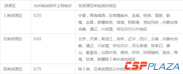全國光伏發電上網標桿電價表