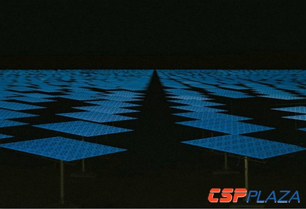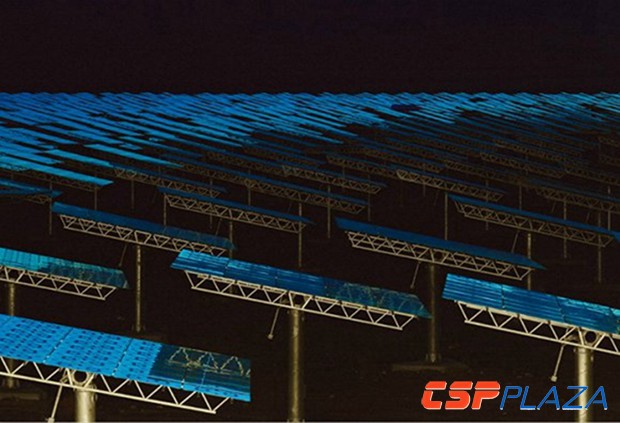 傍晚時分 定日鏡面朝太陽方向