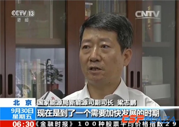 CSPPLAZA光熱發電網訊:9月30日,在央視新聞頻道《朝聞天下》欄目中,發布了一則《我國光熱發電開始啟動產業化》的簡訊,對于目前中國光熱發電行業的現狀進行了簡要報道,國家能源局新能源司副司長梁志鵬簡要介紹了中國首批光熱發電示范項目推進的目的和中國光熱發電行業的未來發展思路。