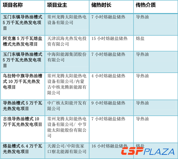 圖:中國首批光熱示范項目中的7個槽式項目的基本信息