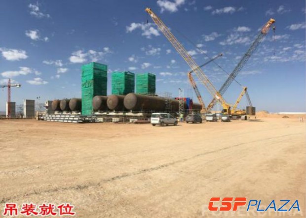 日前,山東三建摩洛哥努奧二期HTF系統1號~6號溢流油箱全部吊裝就位。