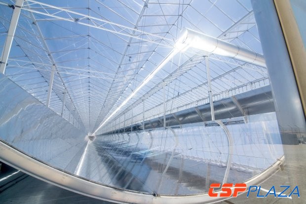 Miraah項目采用GlassPoint公司設計的大曲面反射鏡,通過其收集陽光的熱量并加熱水產生蒸汽,再把蒸氣灌入油田,加熱重質油并降低其黏稠性。該項目的另一獨特之處是將反射鏡設于溫室內,由KUBO集團建設的高科技溫室為全封閉空間,可保證太陽能集熱器免受沙漠風沙的影響。