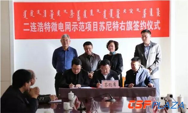 CSPPLAZA光熱發電網訊:11月4日,總投資95億元的二連浩特可再生能源微電網示范項目蘇尼特右旗1號、2號集群項目簽約儀式在蘇尼特右旗舉行,1號、2號集群各涉及到5萬千瓦光熱發電項目,分別由中電投蒙西能源有限責任公司和北京天潤新能投資有限公司負責開發。