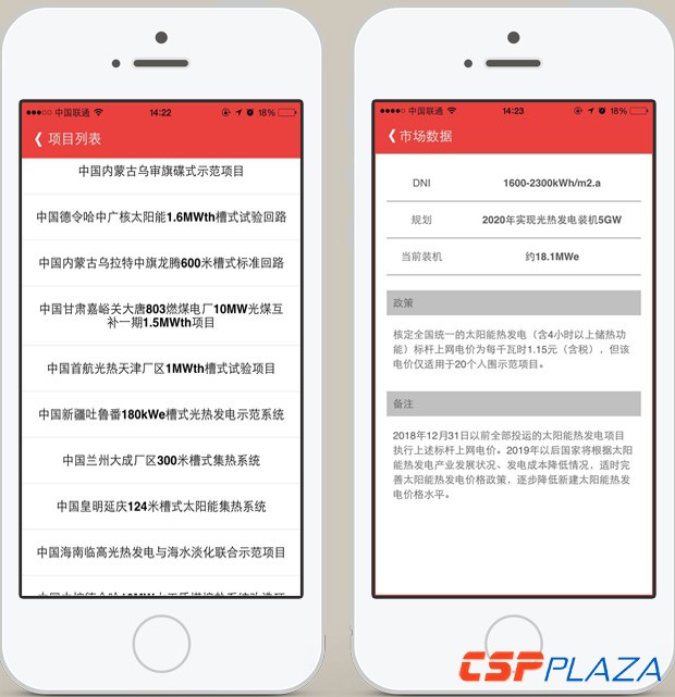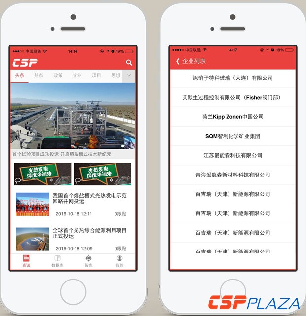 CSPPLAZA立足于從信息資訊和商務對接的角度助力示范項目開發,服務光熱發電全產業鏈關聯企業。著眼于手機移動端的快速發展,CSPPLAZA于2016年10月18日正式推出移動端資訊和數據平臺《掌控光熱》。該APP是光熱發電行業首個移動端平臺,定位于為行業人士提供更便捷、更專業、更權威的行業資訊和數據,讓光熱人隨時隨地“掌控光熱”。