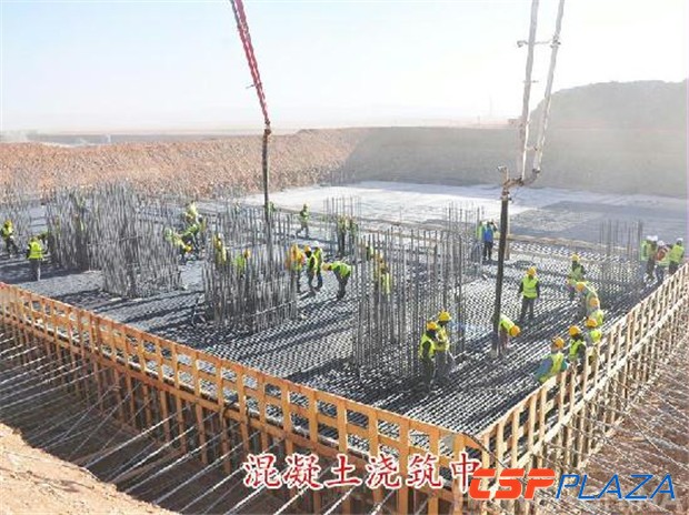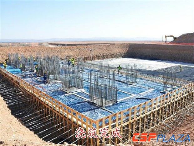 導熱油膨脹箱和溢流箱基礎是Noor二期大體積混凝土澆筑項目之一。摩洛哥Noor光熱項目二期是目前全球在建的裝機容量最大的槽式光熱電站。截至目前,鏡場施工全面啟動,動力島施工正在高效推進。