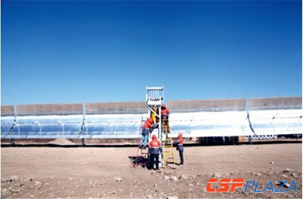 在光熱電站系統集成方面,中海陽擁有自主研發的國內首套槽式集熱器裝配檢測系統,該裝配檢測系統由組裝工裝、3D光學坐標定位系統、動態平衡檢測系統等組成。該系統是國內首創將槽式集熱器劃分為不同的模塊化組裝,同時結合高精度的光學檢測設備,確保集熱器在組裝過程中各部件的精確定位,滿足鏡場對集熱器的精度要求,為大型太陽能槽式光熱電站經常部分的快速、簡潔、高效組裝以及光學精度一致性提供了有效保障。其中,中海陽獨立掌握的包括集熱器支架制作技術、集熱器之家組裝工裝技術、集熱器支架安裝技術、集熱器支架運輸吊裝技術,并已通過項目驗證,完全適用于國內大型光熱示范電站。