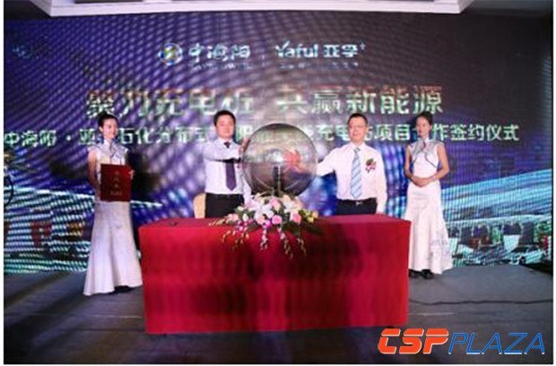 圖:中海陽與亞孚石化簽約分布式太陽能無線充電站合肥項目