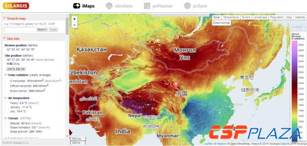 Solar GIS是由歐洲Geo Model Solars.r.o.開發的高分辨率高精度衛星模擬數據庫,可提供全球各地的太陽輻射模擬數據,以Solar GIS數據為支撐編制的資源評估報告可被世界銀行(World Bank)認可,并作為融資貸款的測算依據。瑞科科技在2012年將Solar GIS引入中國以來,以其250米分辨率的高精度得到了業內人士的廣泛認可,國內40余家投資商及科研設計單位已將Solar GIS應用于光熱光伏項目的前期開發、資源評估和發電量計算。