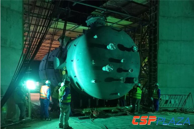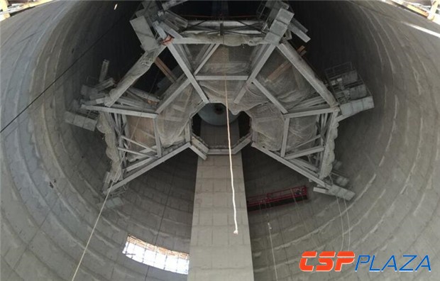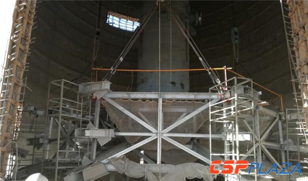 CSPPLAZA光熱發電網訊:據山東電建三公司方面消息,日前摩洛哥NoorⅢ光塔內部180m平臺及入口熔鹽罐吊裝工作順利完成。