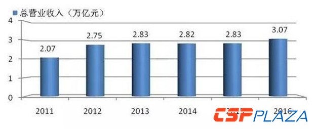 2016“500強”企業的總營業收入為30666億元,比2015年的28329億元大幅增加了2337億元。