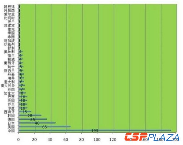 美國有GE Energy、Archer Daniels Midland Company、Dow Corning Corporation、First Solar、等65家企業進入“500強”榜單,比去年(72家)少7家,占13%,位居第二;