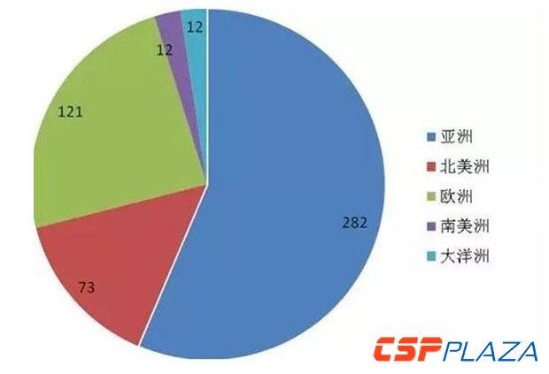 自2015全球新能源企業“500強”亞洲首次在入圍的企業數和其總營業收入額上全面超越歐洲后,今年亞洲在的企業數和其總營業收入額上拉大了與歐洲的差距,優勢擴大。