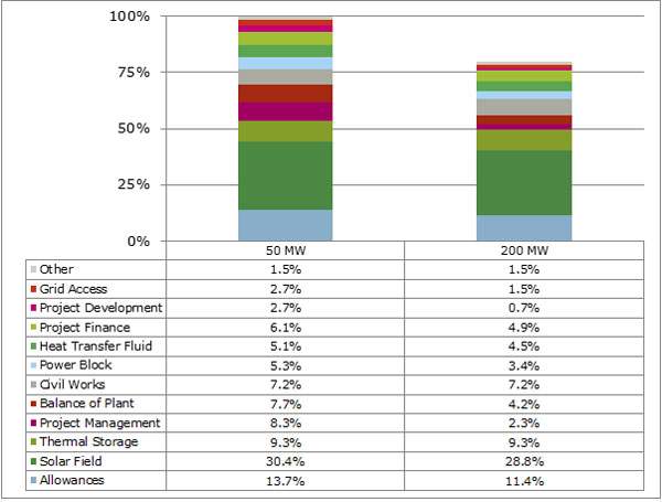 圖表5:大規模對一個槽式電站的成本影響(50~200MW)