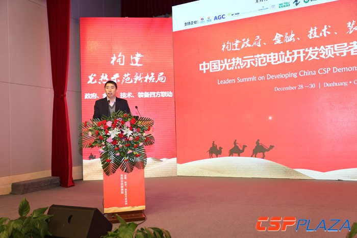 CSPPLAZA光熱發電網訊:主題為“構建政府、金融、技術、裝備四方聯動的光熱示范新格局”的中國光熱示范電站開發領導者峰會暨CSPPLAZA2017新年匯于2016年12月28日~30日在甘肅省敦煌市盛大召開,敦煌市副市長陳顥出席本屆峰會并致辭。
