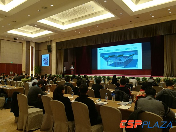 來自中控太陽能、山東電建三公司、西北電力設計院、鑫晨光熱、北京兆陽光熱、中海陽等相關行業企業代表共計約80人參加此次研討會。研討會上,ENEXIO來自德國和匈牙利的空冷技術專家Andras Mikovics、Attila Gregasz分別就ENEXIO的In Air直接空冷系統、自然通風直接空冷系統及環塔式海勒間冷系統、光熱間冷交替儲熱系統、直冷間冷聯合優化冷卻技術進行了專題介紹,并分享了其目前正在參與的摩洛哥NOOR II和NOOR III光熱發電項目的空冷系統服務案例。