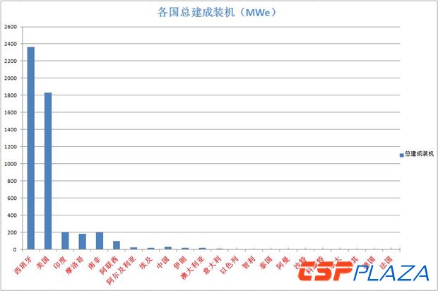 圖:各國總CSP建成裝機圖(制圖:CSPPLAZA)