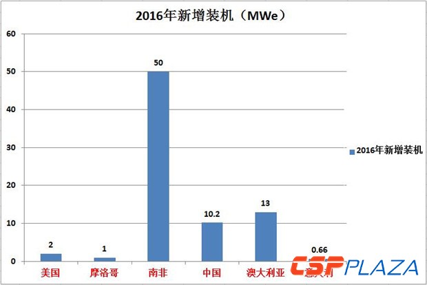 圖:各國2016年新增CSP建成裝機(制圖:CSPPLAZA)