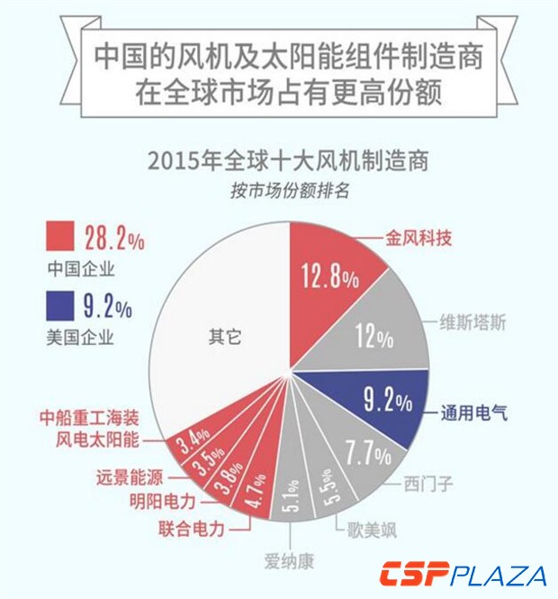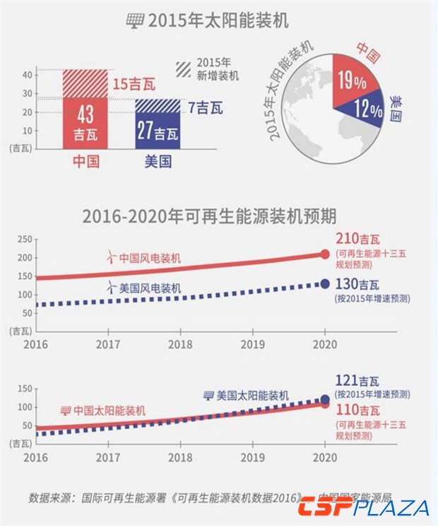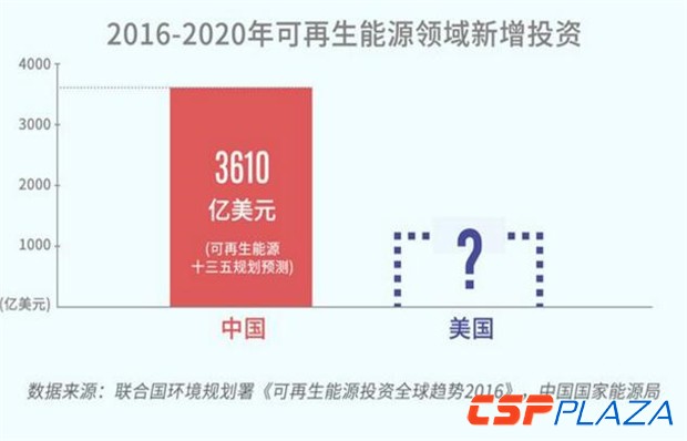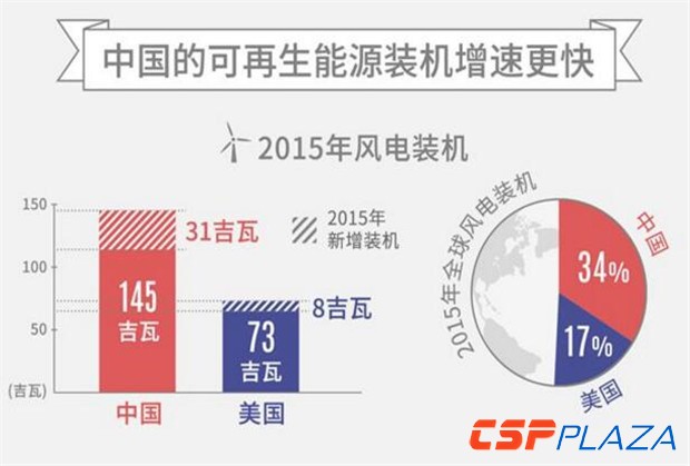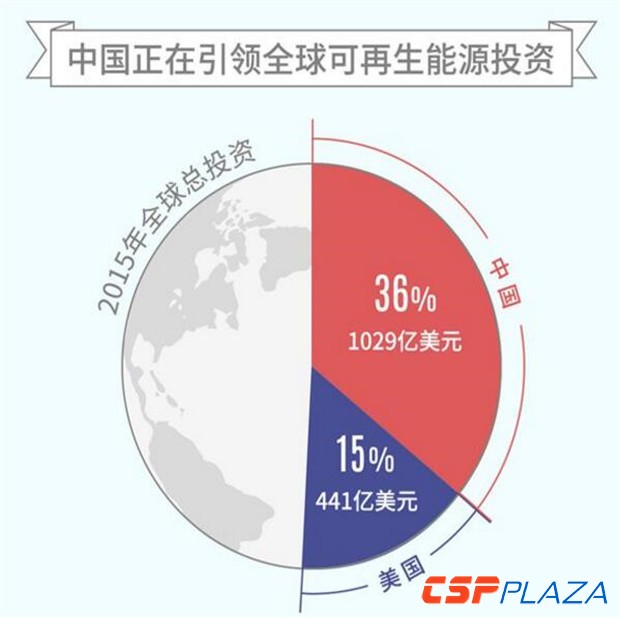 從可再生能源的投資規模看來,中國在2015年以1029億美元(占全球可再生能源總投資的36%)的投資額排在全球首位。同年美國則以441億美元的投資額位居第二。