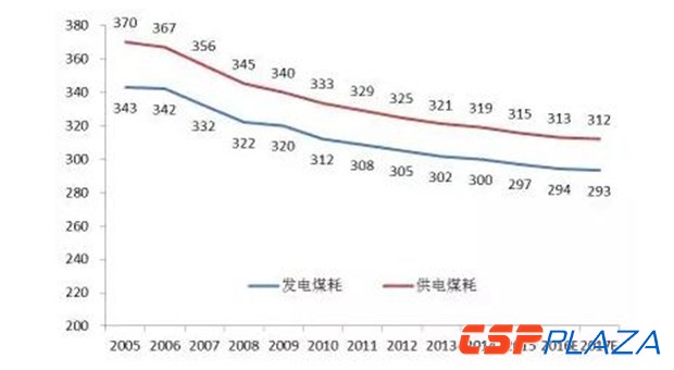 圖:2005年來火電發供電煤耗變化趨勢分析