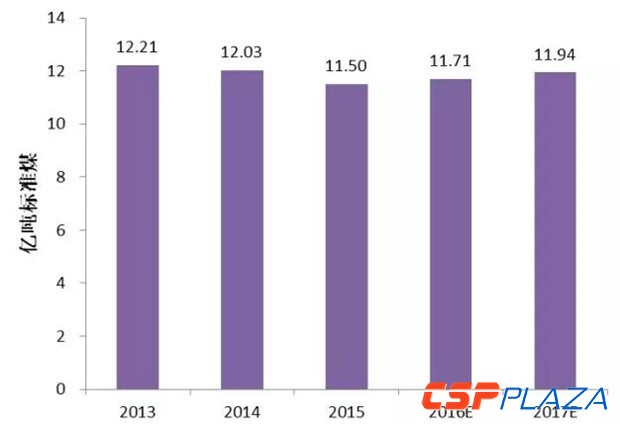就發電耗煤量而言,2013年達到了12.21億噸標準煤,此后2014、2015年由于煤電發電量下降而連續兩年降低。根據2016年、2017年的煤電發電量和發電煤耗率的走勢,我們預計2016、2017年發電耗煤量有小幅回升,2017年預計達到11.94億噸標準煤,仍未回升到2013年的水平。