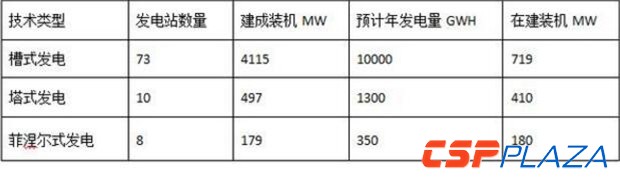圖:各種太陽能熱發電技術裝機容量和發電量統計(粗略統計,截至2016年2月)