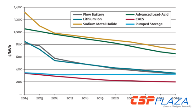 圖:2014-2024全球用戶側儲能系統成本發展趨勢(按技術類型)