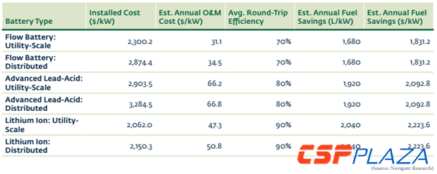 報告中特別指出,除了電網基礎設施依靠儲能系統可以提供更多的服務外,偏遠地區的微電網還因儲能系統的接入而極大地降低了對柴油發電的依賴性。在年度節油方面,公共事業規模儲能和分布式鋰離子儲能都比燃油具有更明顯的優勢,安裝成本分別是2062美元/kW和2150.3美元/kW,節油成本均達到2223.6,美元/kW。