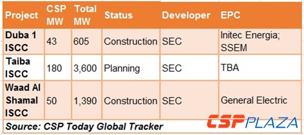 圖:沙特開發的ISCC項目統計(來源:CSP Today Global Tracker)