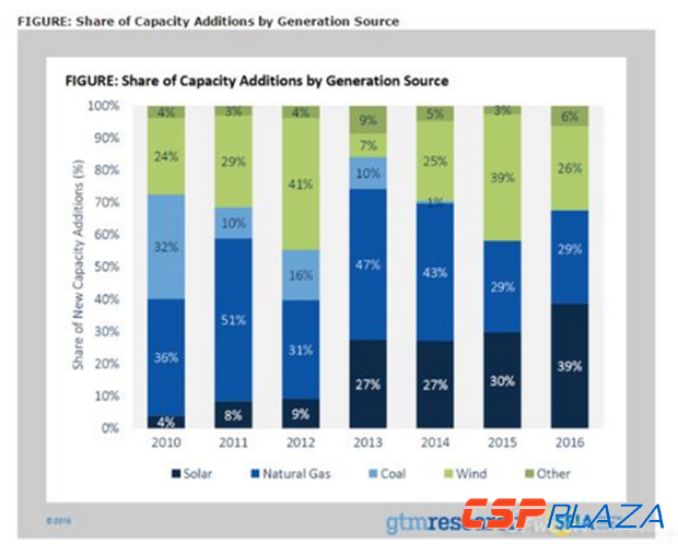 GTM Research研究還表明,美國光伏市場將呈現出多元化增長趨勢。2016年美國22個州太陽能新增100兆瓦,其中包括馬里蘭州和新澤西州住宅市場取得大幅增長。