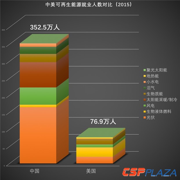 在中國,僅光伏行業全產業鏈就業人數就達165.2萬人,遠超美國全部可再生能源的就業人數。