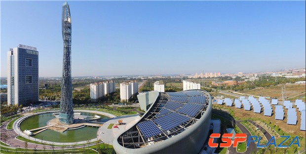 該塔式光熱發電系統的裝機功率雖只有200kW,但卻是全球首個低熔點四元熔鹽儲能應用項目,同時也是全球首個城市建筑與光熱發電相結合的項目和全球首個光熱發電、儲能調峰、熱電冷聯供、智慧能源管理一體化項目。