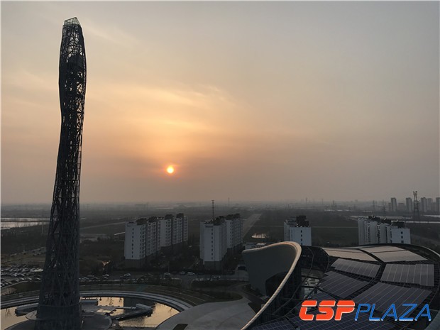 CSPPLAZA光熱發電網報道:在楚霸王項羽的故鄉——江蘇宿遷,一座131米的高塔正逐漸成為當地新的地標性建筑,其雄偉并兼具科技之美的外觀使不少第一次看見它的人記住了它,這并不是一座普通的景觀塔,其更是位于宿遷經濟技術開發區光電科技中心的塔式光熱發電系統的核心組成部分——集熱塔。