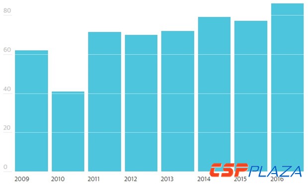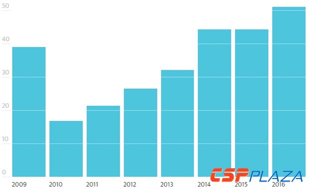 2016年,歐盟國家境內新增裝機容量共2450萬千瓦,其中,有百分之86%(2110萬千瓦)來自于風電、光伏發電、水電及生物質能發電,遠超過2014年79%的占比記錄。