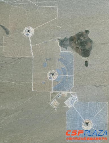 圖:俯瞰Ivanpah光熱電站(從前到后依次為1-3號電站,9月份衛星照片)