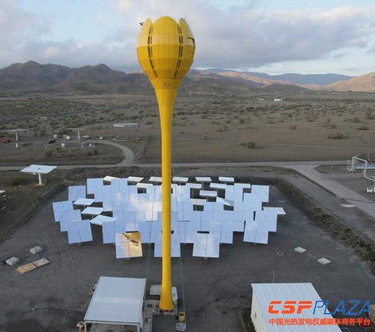 這種被稱為DST技術的最大特點之一是模塊化,單個模塊的發電功率為100kw,共有52面定日鏡和一個集熱發電塔組成。占地面積約2000平方米。塔高35米。
