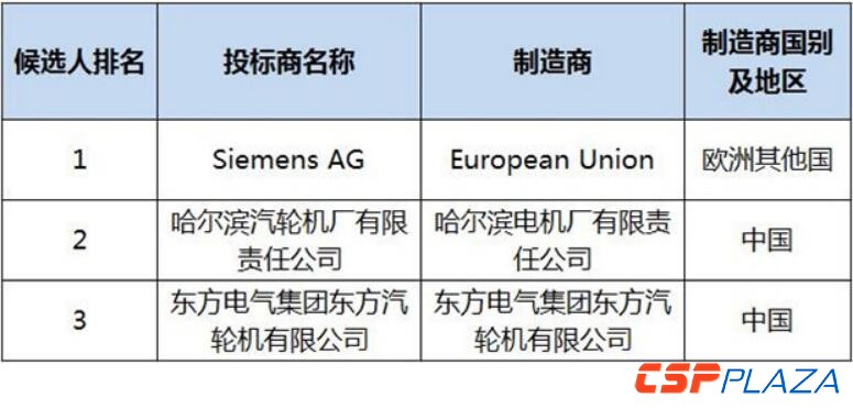 哈爾濱汽輪機廠有限責任公司以及東方電氣集團東方汽輪機有限公司分列第二和第三名(具體見下表)。此評標結果公示為期三天,將于2017年3月30日公示截止。